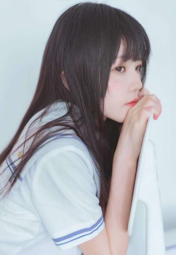 接下来的几张照片中,桜桃喵则更进一步展现了她的优雅与自信。她在照片中轻松地整理着自己的头发,举手投足间都流露出一种随性而又高贵的气质。水手服的剪裁恰到好处,丝毫不显得做作,却又能展现出她的纤细身形。