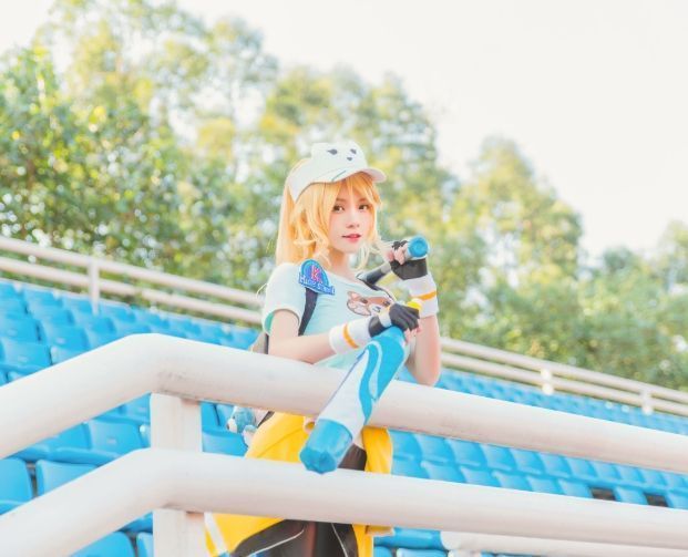 在阳光洒满的运动场,桜桃喵一边摆出完美的造型,一边仿佛带着故事情节进了我们的眼睛。她的服装细节上更是下了不少功夫——那顶可爱的白色帽子、宽松的运动裤,配上活力四射的姿势,真是让人眼前一亮。她不只是在还原花木兰的外形,更是在传递一种青春的气息,一种敢于挑战、勇敢坚持的精神。就像她举着那根棒球棒,眼神坚定,仿佛是在告诉我们:无论遇到什么困难,我们都要像木兰一样勇敢前行。