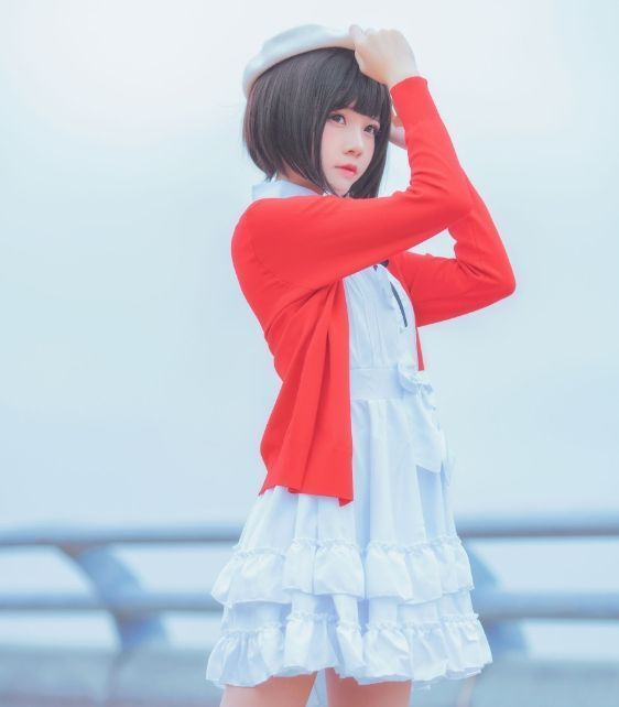 大家好,今天我想和大家分享一组超可爱的Coser作品,主角是桜桃喵,扮演的角色是《加藤惠》的常服造型。看到这组照片的时候,我简直是被她的魅力迷住了,简直无法自拔。你能想象一个身穿简洁而又充满青春气息的白色连衣裙、搭配红色外套的女孩吗?她的每一个动作都透着一种不经意的可爱与青春,简直让人心动。