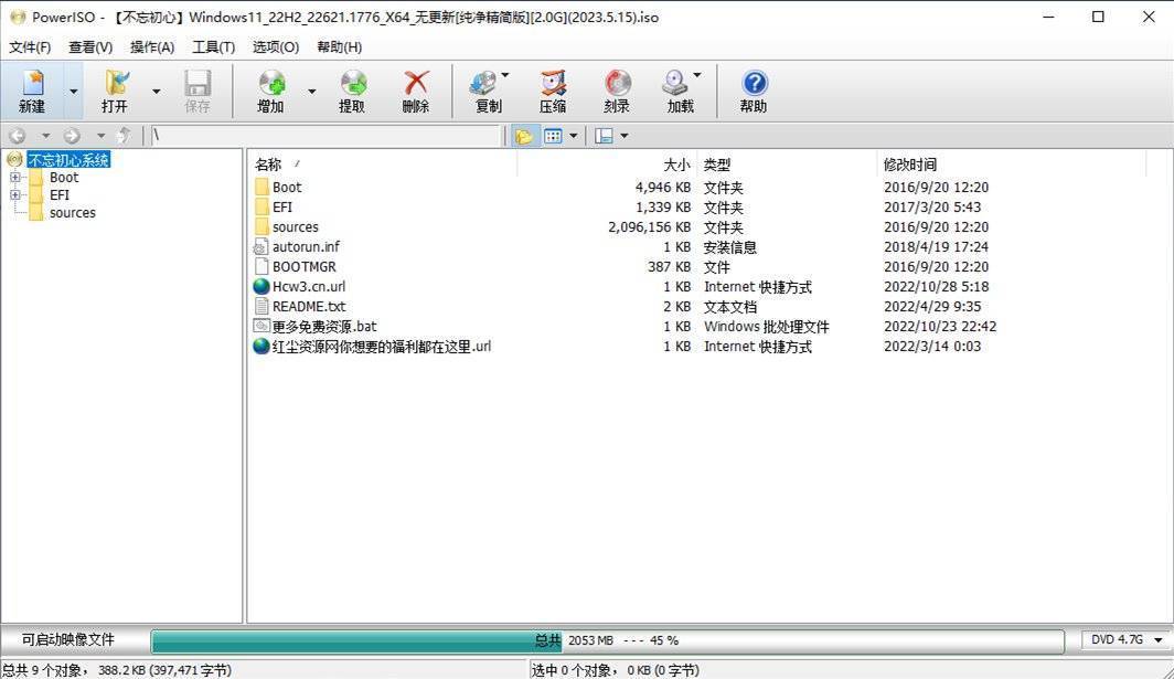 3、支持制作可启动的ISO映像文件,优化、压缩映像文件以节省磁盘空间,并且支持直接刻录映像文件。