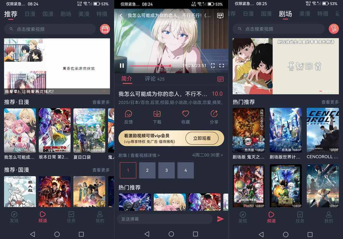 动漫共和国去广告版不仅仅是一款普通的动漫播放软件,它通过多种功能的整合为用户提供了极致的使用体验。以下是几个主要的亮点功能: