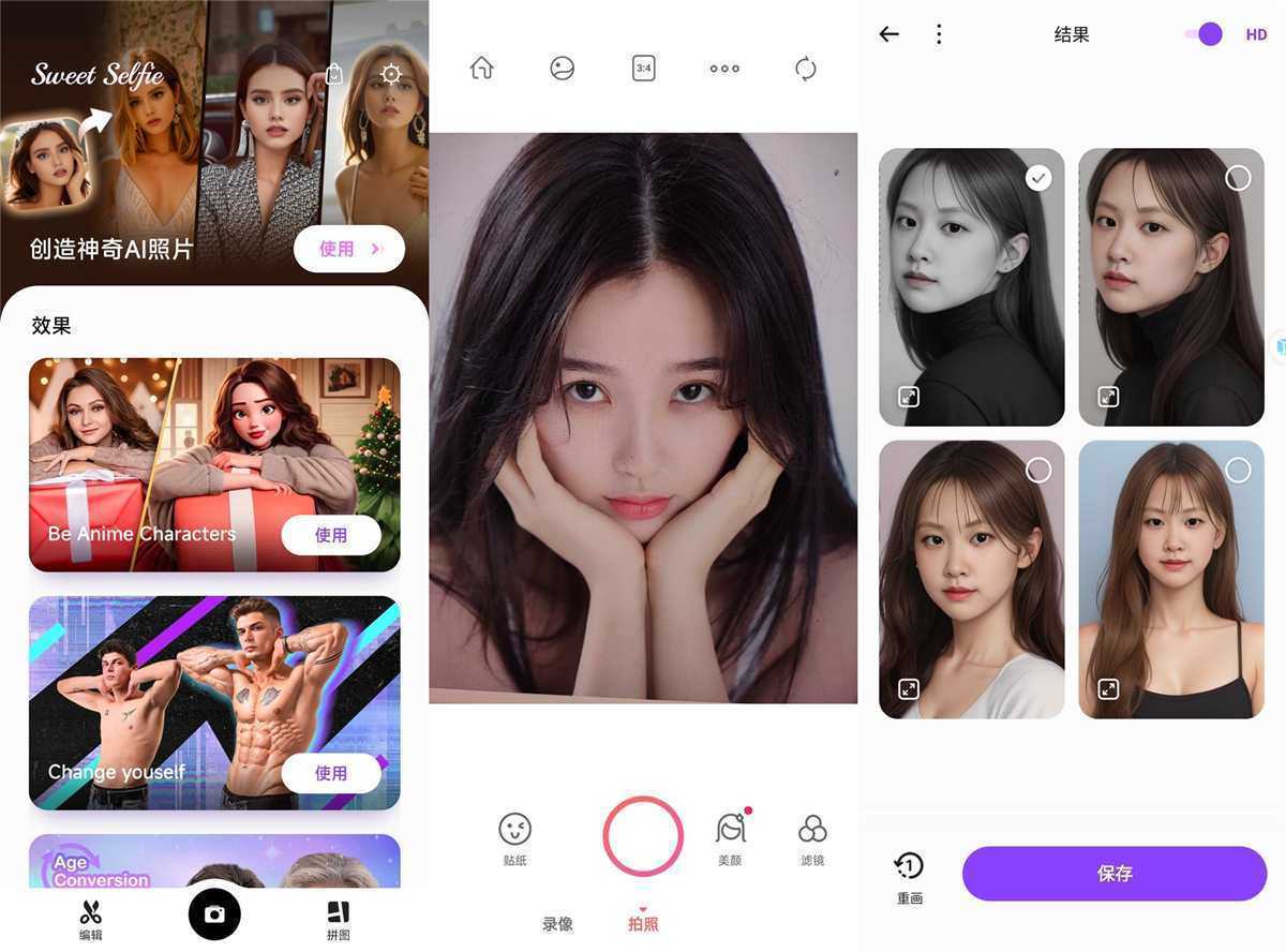 照片编辑器: 添加艺术滤镜,让您的自拍更添时尚和流行。
