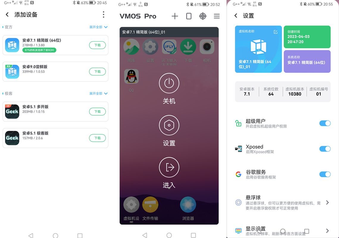 VMOS(虚拟大师)-全球首款安卓虚拟手机系统,不受真机系统限制,能满足开发和测试的需求,不用担心病毒和系统崩溃的风险。vmos pro去广告版自带root权限,支持XP框架和谷歌套件,满足极客手机爱好者的各种需求。vmos pro破解版的悬浮窗功能,支持真机和虚拟机双开同屏操作。vmos pro纯净版的悬浮球功能和手势,让操作和切换变得更简单便捷。