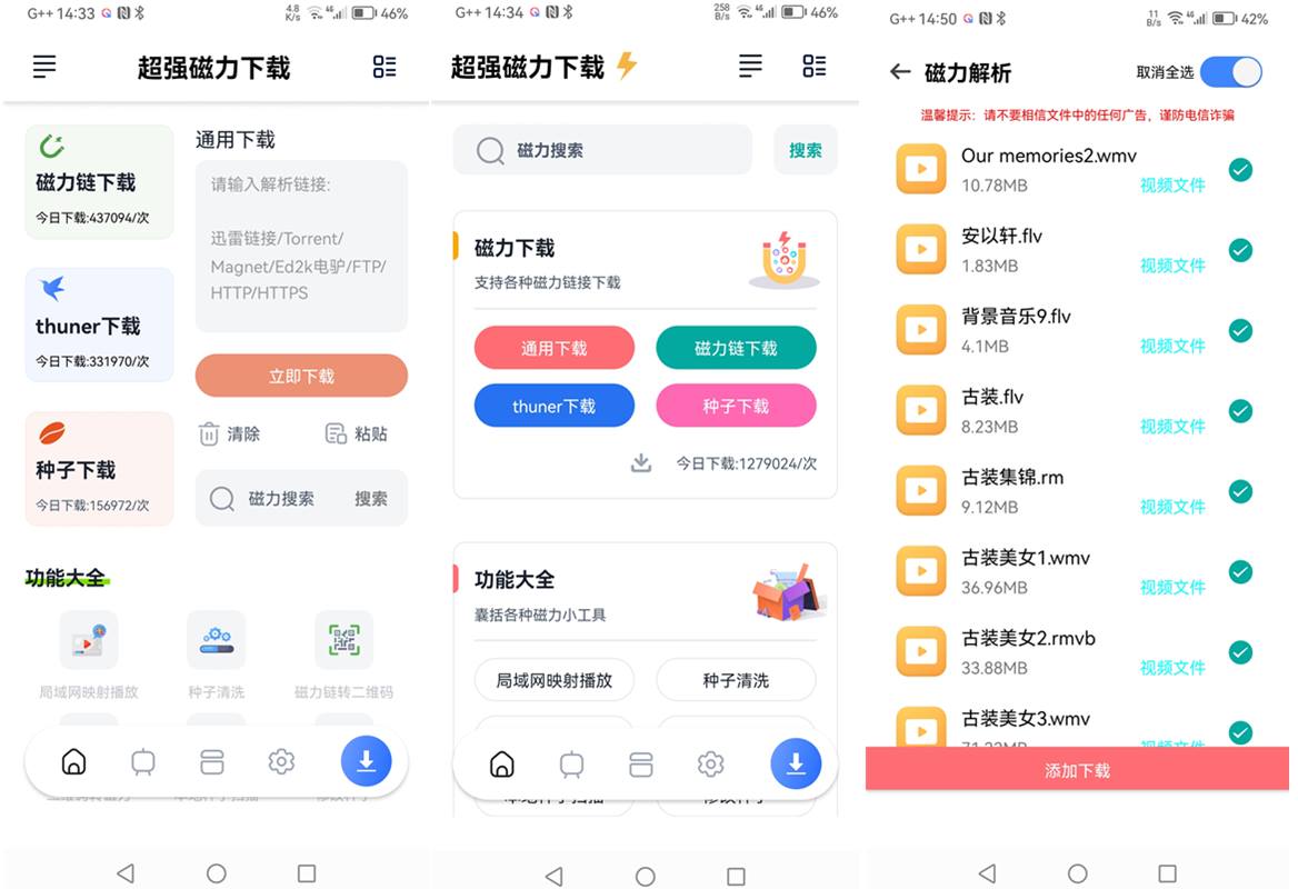 超强磁力下载手机版下载速度可达20m/s,完美媲美某雷下载软件,是一个逆天的手机磁力下载神器,支持种子、冷门磁力、死磁等多种链接下载,解析速度非常快,而且还能在线边下边播。超强磁力下载会员版无需任何费用,超强磁力下载解锁版让你轻松获取丰富的资源,绝对是你下载的不二之选!超强磁力下载无限制版带给你下载新体验,让你能够更加轻易得收获自己需要的资源!