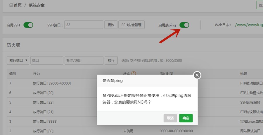 二、宝塔面板如何禁ping
