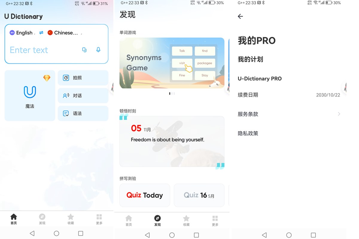 拍照翻译:支持多种输入方式,独创“摄像头查词”功能,无需输入也能查单词。