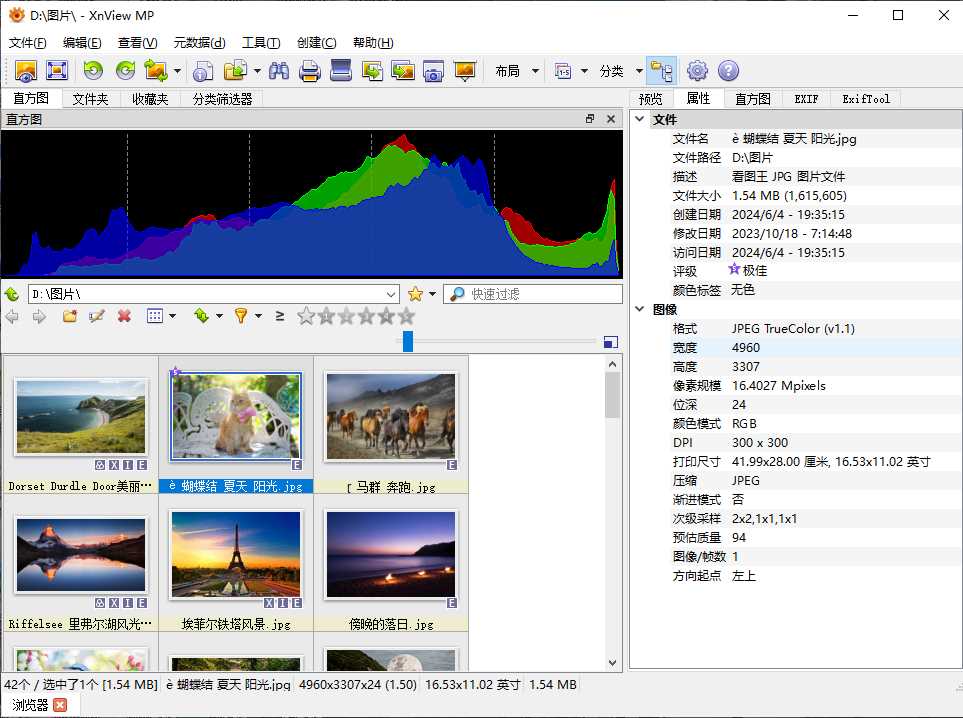 丰富的插件:支持插件扩展,包括EXIF查看器、批量重命名、格式转换等。