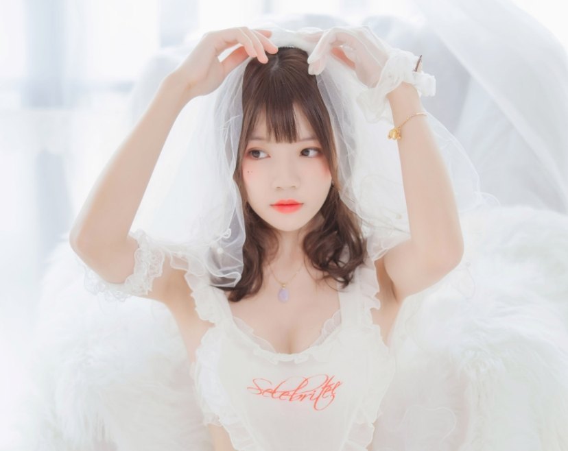 **白纱**,是一种神奇的东西,它能瞬间把现实拉进梦境。它不仅仅是婚礼上的标配,更是少女心的终极象征。当桜桃喵轻轻地掀起头纱,露出那带着些许羞涩的目光时,空气里仿佛都多了一丝甜蜜的气息。这不是单纯的cosplay,而更像是一场“少女的幻想”被具象化的过程。每一处细节都被她拿捏得恰到好处,柔和却又带着一点点挑逗的意味——你说是天使?可那种眼神,又透着几分恶作剧的俏皮。