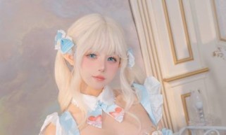 最近,看了一组让人眼前一亮的作品,这就是咬一口兔娘ovo的最新创作——“爱丽丝蛋糕”系列。这组照片如同从童话故事中走出来的一般,将我们带入了一个充满甜美和梦幻色彩的世界。在这些照片中,咬一口兔娘ovo身穿蓝白色的爱丽丝风格裙子,俏皮可爱,仿佛是一个从梦境里走来的小仙女。特别是在她与一只大兔子互动时,画面不仅有点童话的味道,还透露出一种独特的纯真和甜美感。看到她含着樱桃和兔子亲密互动的场面,不禁让人